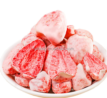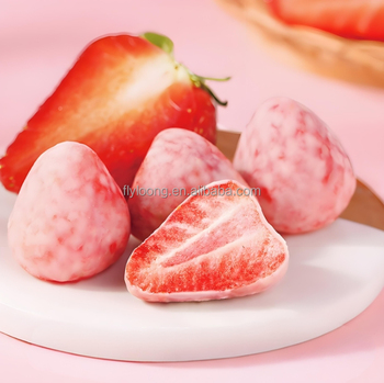Aperitivos con sabor a OGM de fresas enteras liofilizadas recubiertas de chocolate blanco dulce de alta calidad, envasado al vacío a granel
